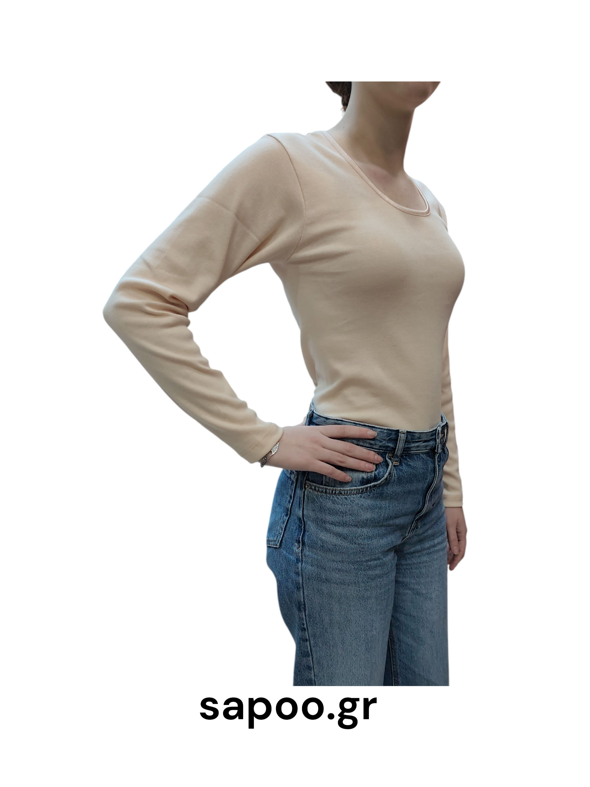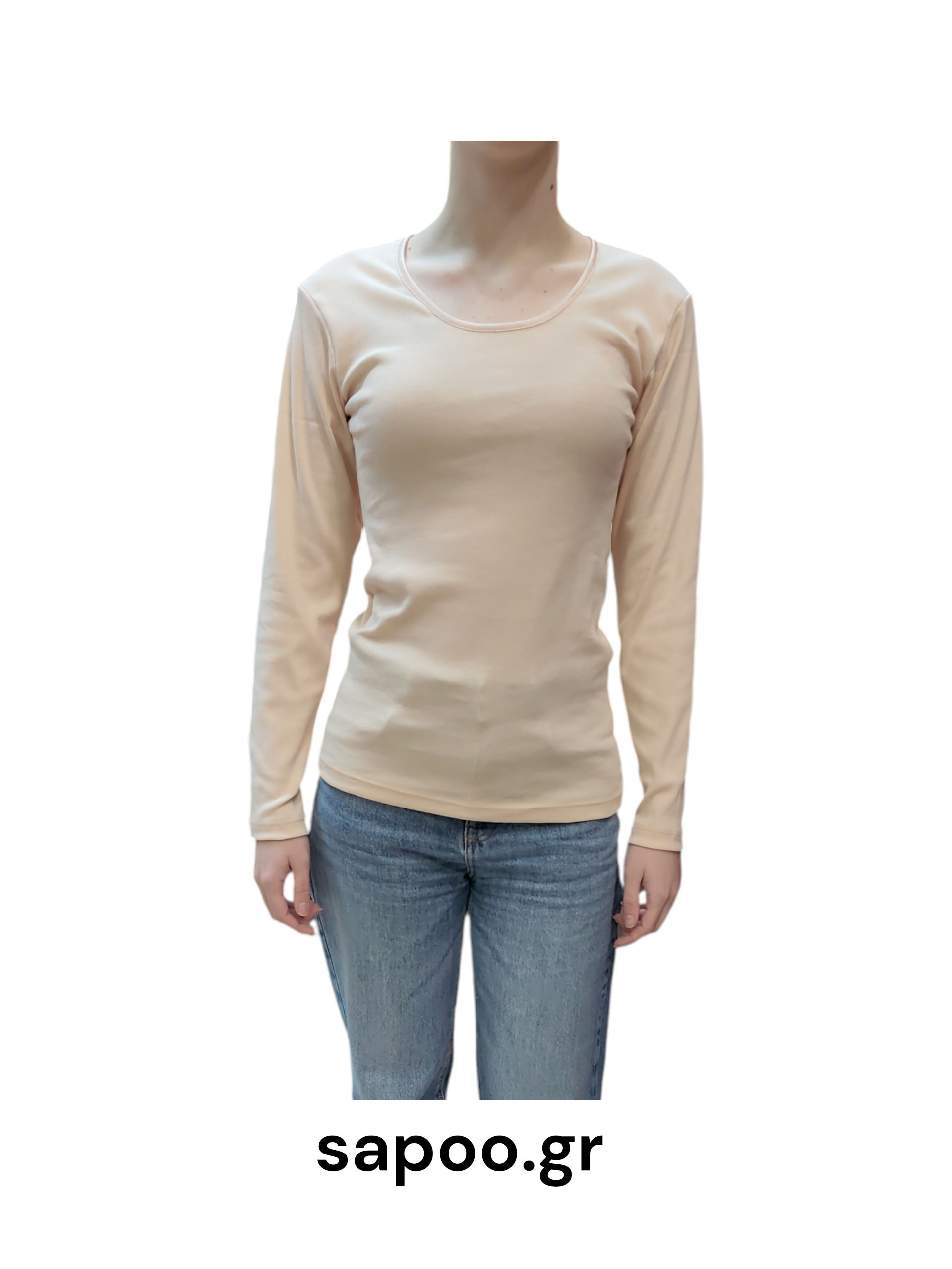 613 Γυναικεία βαμβακερή φανέλα μακρύ μανίκι με ανοικτό λαιμό