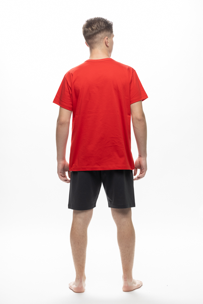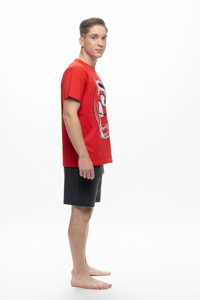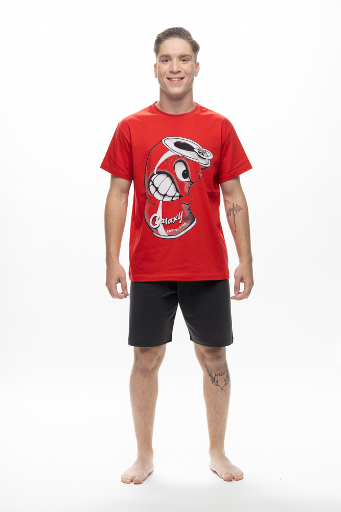 Πυτζάμα εφηβική κοντομάνικη GALAXY για αγόρι. Μονόχρωμη κόκκινη μπλούζα με τύπωμα “energy drink” και μονόχρωμο ανθρακί σορτσάκι.