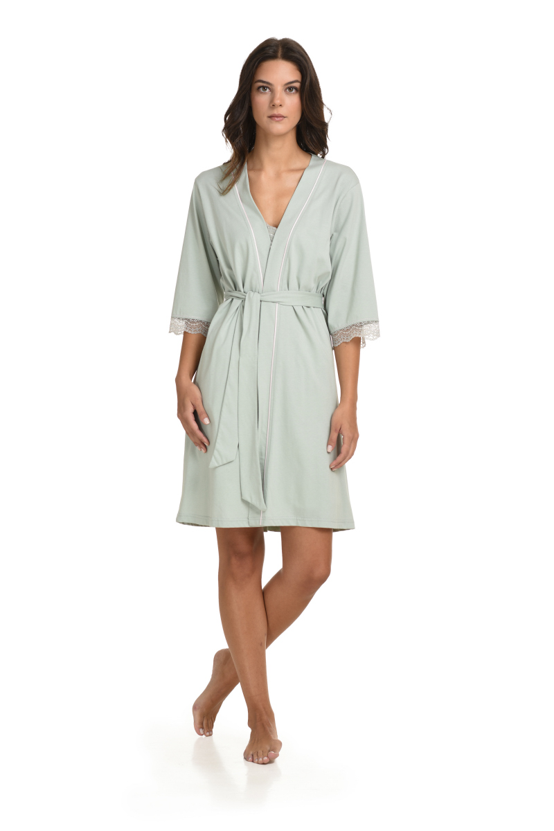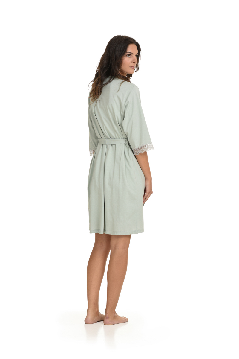 Primavera ρόμπα δωματίου. Μονόχρωμη βαμβακερή ρόμπα ως το γόνατο (μήκος περίπου 100cm) με τρουακάρ μανίκι και διακοσμητική δαντέλα. Σταυρωτή, χωρίς κουμπιά, με ζώνη στην μέση για άνετη εφαρμογή. Ελληνικής κατασκευής στις εγκαταστάσεις της Primavera Lingerie στην Θεσσαλονίκη. Υψηλής ποιότητας ελαφρύ, απαλό και δροσερό βαμβακερό μακό ύφασμα, που δεν κομπιάζει, . Εξαιρετική ραφή για μέγιστη αντοχή και εφαρμογή.