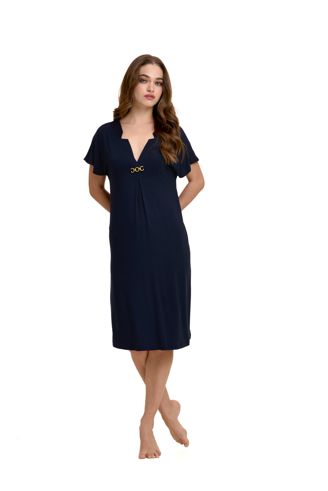 Φόρεμα Primavera κοντομάνικο. Φόρεμα μονόχρωμο από viscose με ζαπονέ μανίκι και διακοσμητικό κόσμημα. Ελληνικής κατασκευής στις εγκαταστάσεις της Primavera Lingerie στην Θεσσαλονίκη. Υψηλής ποιότητας μαλακό και δροσερό ύφασμα με ελαστικότητα από βισκόζ που δεν κομπιάζει με 5% λύκρα. Εξαιρετική ραφή για μέγιστη αντοχή και εφαρμογή.