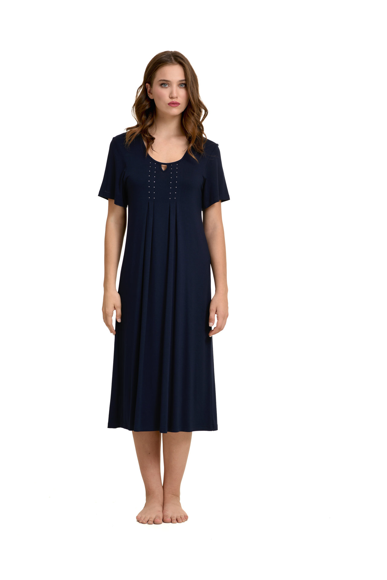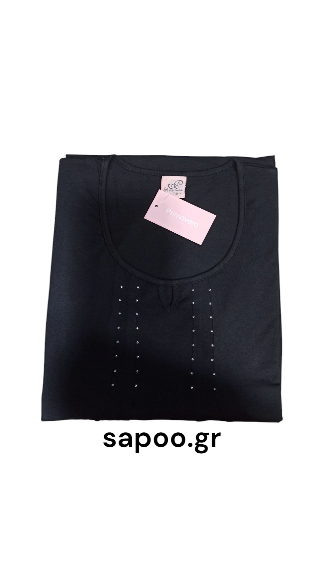 Φόρεμα Primavera κοντομάνικο. Φόρεμα μονόχρωμο από viscose με κοντό μανίκι και διακοσμητικά στρασάκια. Ελληνικής κατασκευής στις εγκαταστάσεις της Primavera Lingerie στην Θεσσαλονίκη. Υψηλής ποιότητας μαλακό και δροσερό ύφασμα με ελαστικότητα από βισκόζ που δεν κομπιάζει με 5% λύκρα. Εξαιρετική ραφή για μέγιστη αντοχή και εφαρμογή.