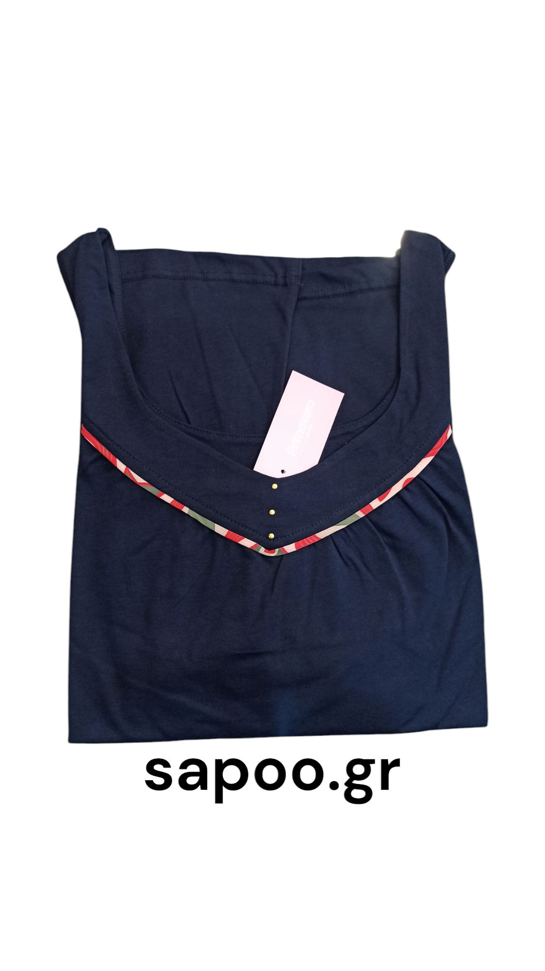 Primavera πυτζάμα αμάνικη. Γυναικεία βαμβακερή πυτζάμα σετ μπλούζα με ώμο, λαιμό “V”, διακοσμητικά στρας και ρέλι. Παντελόνι βερμούδα ως το γόνατο. Ελληνικής κατασκευής στις εγκαταστάσεις της Primavera Lingerie στην Θεσσαλονίκη. Υψηλής ποιότητας λεπτό, μαλακό και δροσερό βαμβακερό μακό ύφασμα που δεν κομπιάζει. Εξαιρετική ραφή για μέγιστη αντοχή και εφαρμογή.