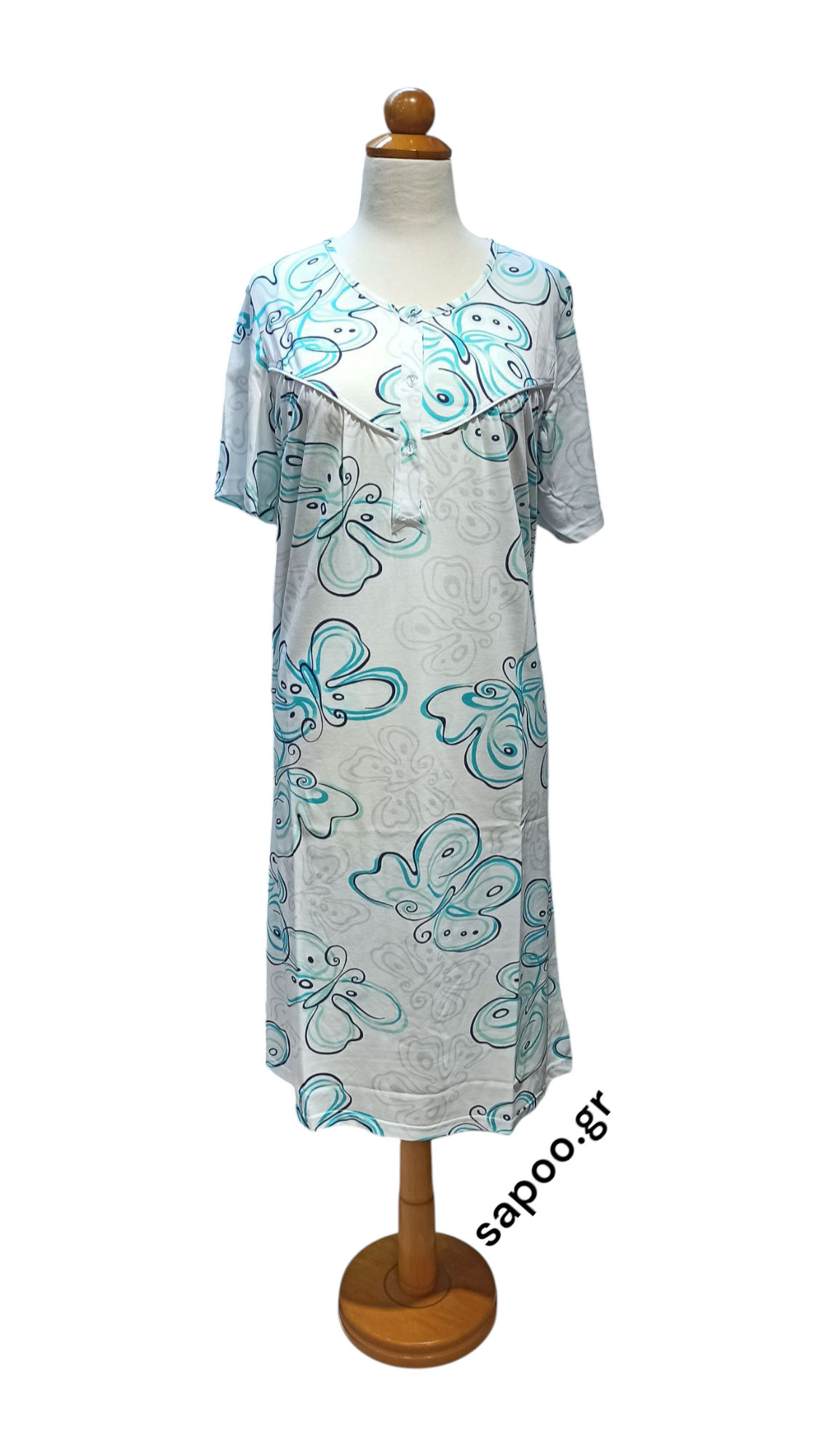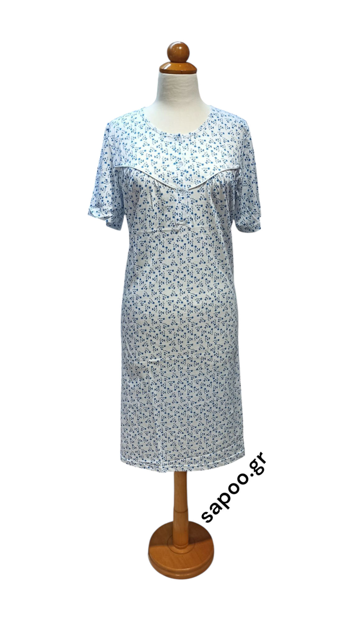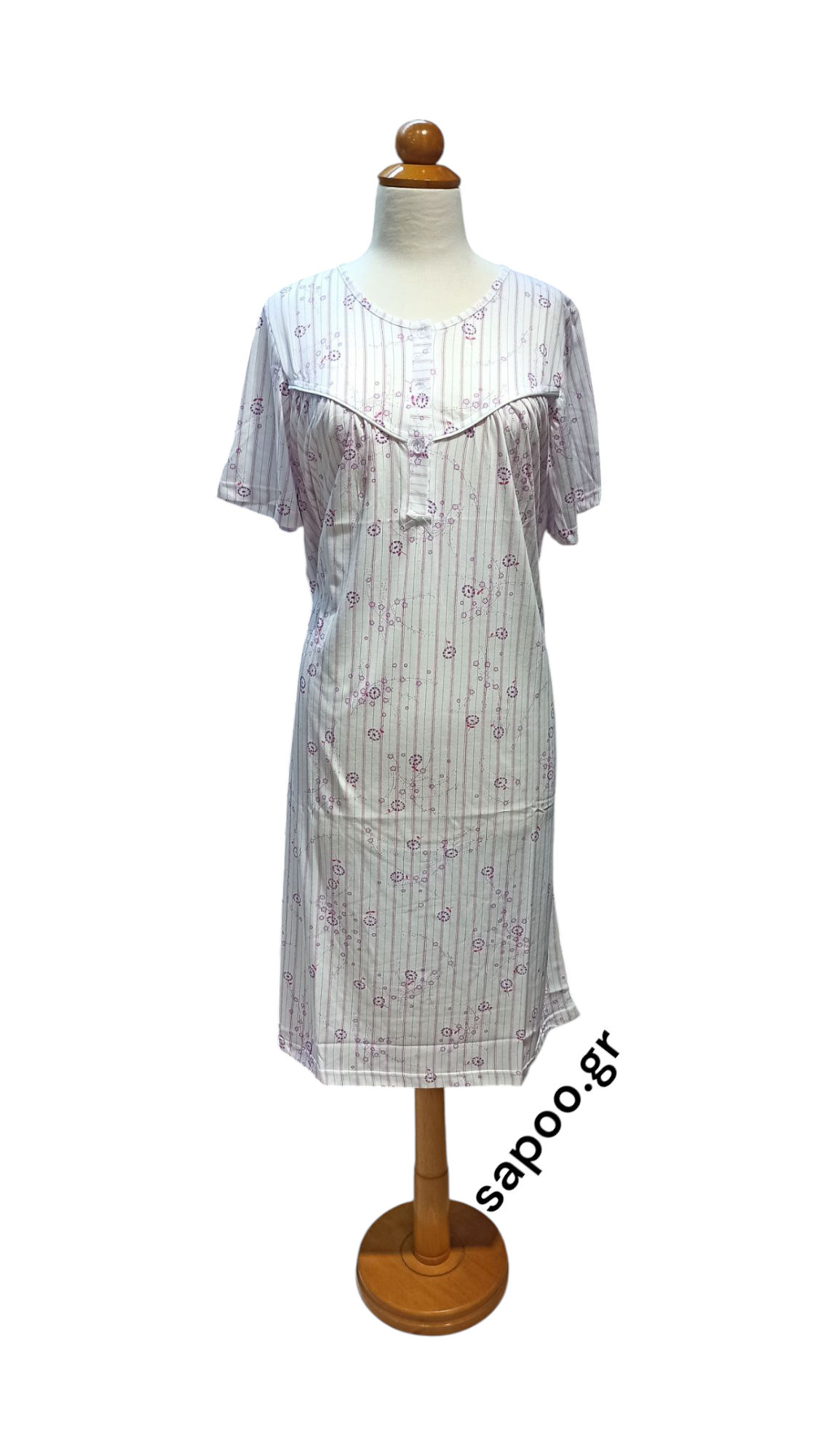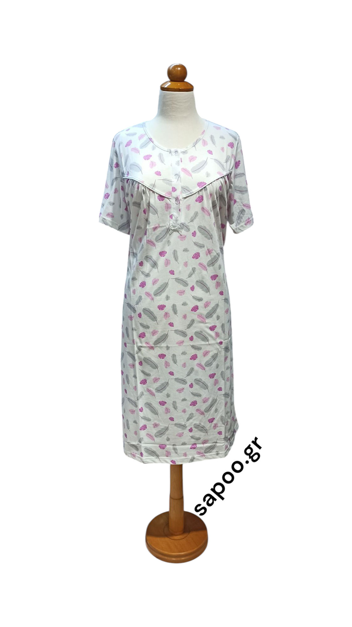 Primavera βαμβακερό νυχτικό μακό με κοντό μανίκι. Εμπριμέ με διακοσμητικό ρέλι. 100% βαμβάκι σε λεπτό δροσερό μακό. Κλασικό σε ριχτή γραμμή με ωμίτη (σούρα στο στήθος) για μεγαλύτερη άνεση και πατιλέτα (κουμπάκια στο στήθος). Ελληνικής κατασκευής στις εγκαταστάσεις της Primavera Lingerie στην Θεσσαλονίκη. Υψηλής ποιότητας λεπτό, μαλακό βαμβακερό ύφασμα που δεν κομπιάζει. Εξαιρετική ραφή για μέγιστη αντοχή και εφαρμογή.