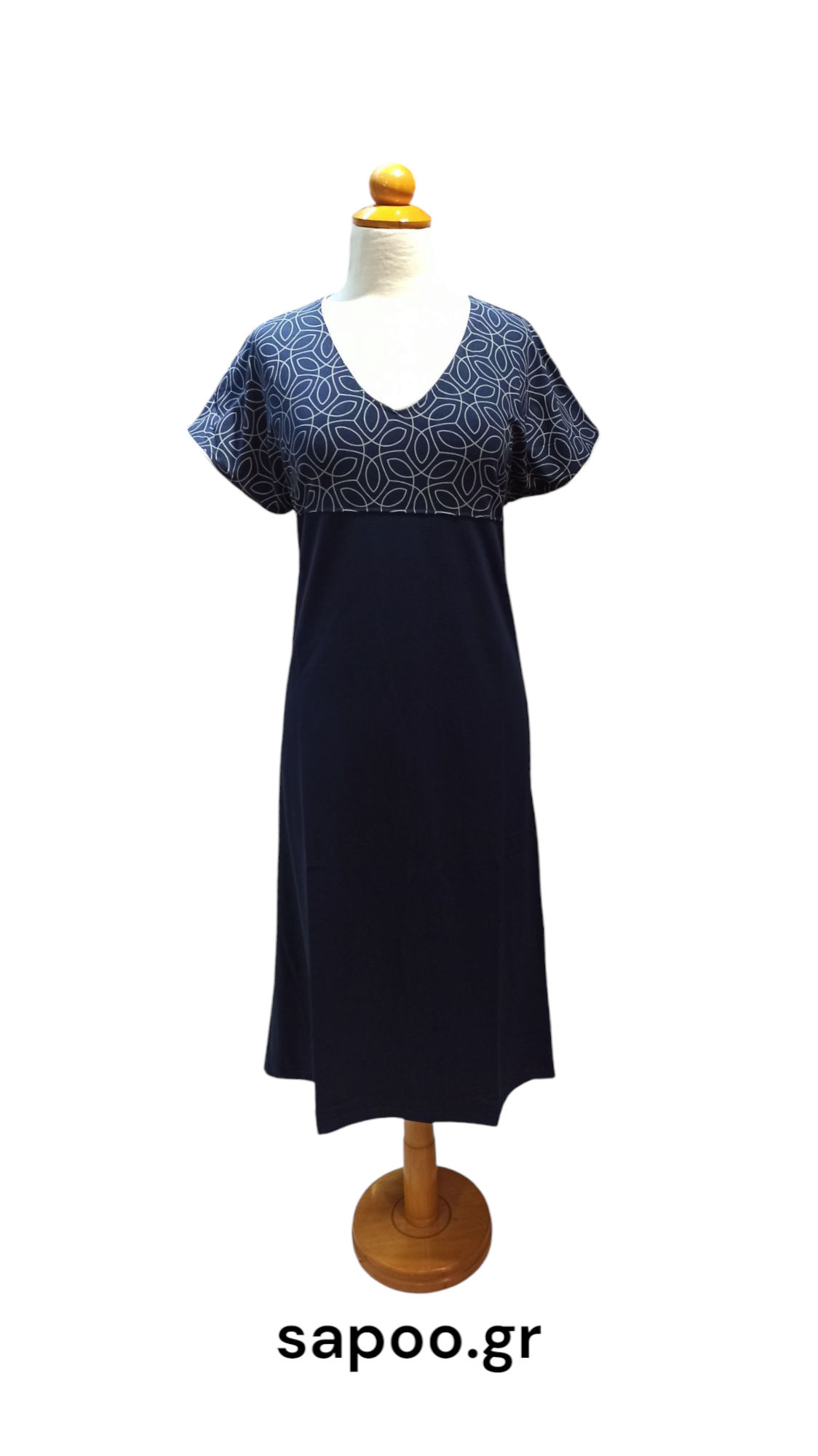 Φόρεμα Primavera κοντομάνικο. Φόρεμα μονόχρωμο από viscose με ζαπονέ μανίκι και διακοσμητικό τύπωμα. Ελληνικής κατασκευής στις εγκαταστάσεις της Primavera Lingerie στην Θεσσαλονίκη. Υψηλής ποιότητας μαλακό και δροσερό ύφασμα με ελαστικότητα από βισκόζ που δεν κομπιάζει με 5% λύκρα. Εξαιρετική ραφή για μέγιστη αντοχή και εφαρμογή.